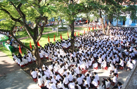 Sáng 15/9, trường THPT Nguyễn Huệ đã tổ chức trọng thể Lễ kỷ niệm 50 năm Ngày thành lập Trường Nữ Trung học Thành Nội - THPT Nguyễn Huệ (15/9/1964 - 15/9/2014).