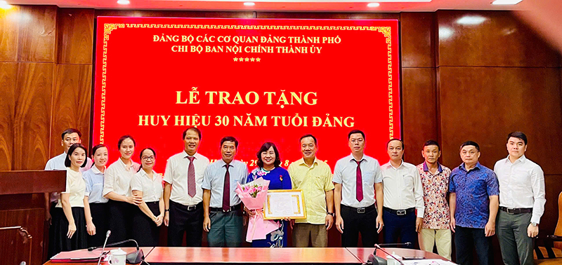 Vừa qua, Chi bộ Ban Nội chính Thành ủy tổ chức Lễ trao tặng Huy hiệu 30 năm tuổi Đảng cho đồng chí Đào Thị Mai Hường - Đảng viên Chi bộ Ban Nội chính Thành ủy. Tham dự buổi lễ có Đồng chí Đặng Ngọc Trân - UVBTV Thành ủy, Trưởng Ban Nội chính Thành ...