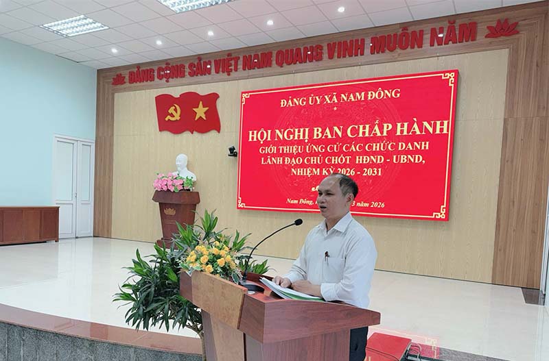 Ngày 23/3, Ban Chấp hành Đảng bộ xã Nam Đông đã tổ chức Hội nghị giới thiệu nhân sự ứng cử các chức danh lãnh đạo chủ chốt HĐND và UBND xã nhiệm kỳ 2026 - 2031. Đồng chí Đoàn Văn Sóng - Bí thư Đảng ủy, Chủ tịch HĐND xã chủ trì Hội nghị. Tham ...