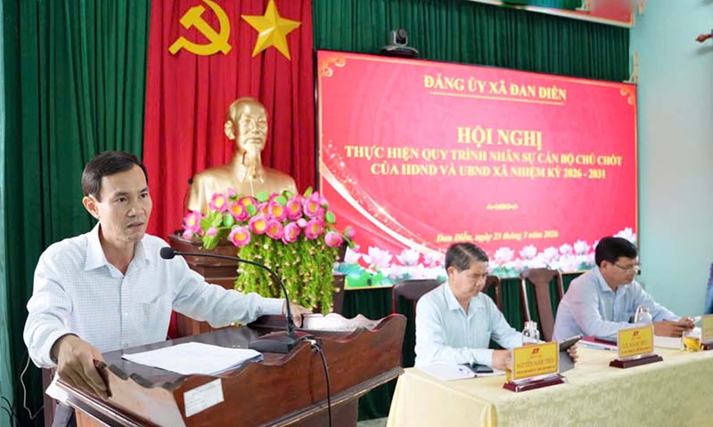 Ngày 23/3, Ban Thường vụ Đảng ủy xã Đan Điền tổ chức Hội nghị thực hiện quy trình nhân sự cán bộ chủ chốt của HĐND & UBND xã, nhiệm kỳ 2026-2031. Chủ trì Hội nghị có đồng chí Lê Ngọc Đức – Bí thư Đảng ủy, Chủ tịch HĐND xã; đồng chí Hồ ...