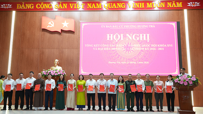 Ngày 23/3, Ủy ban bầu cử phường Hương Trà tổ chức Hội nghị tổng kết cuộc bầu cử đại biểu Quốc hội khóa XVI và đại biểu Hội đồng nhân dân các cấp, nhiệm kỳ 2026 – 2031 nhằm đánh giá toàn diện kết quả triển khai, tổ chức thực hiện trên ...