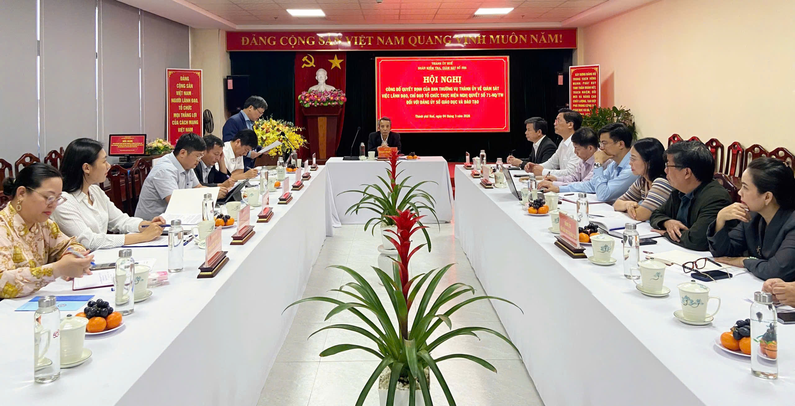 Công bố Quyết định giám sát việc lãnh đạo, chỉ đạo và tổ chức thực hiện Nghị quyết số 71-NQ/TW đối với Đảng ủy Sở Giáo dục và Đào tạo