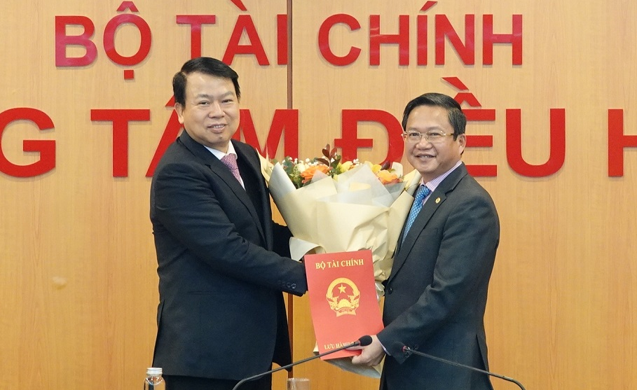 Thứ trưởng Bộ Tài chính Nguyễn Đức Chi trao quyết định và chúc mừng đồng chí Phạm Chí Thanh.