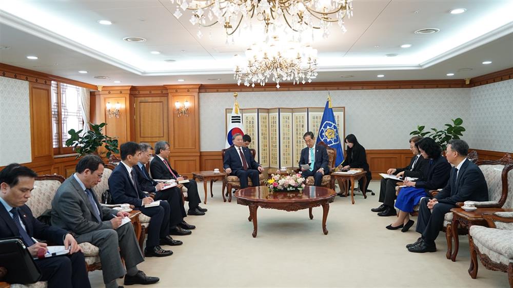 Hoan nghênh chuyến thăm Hàn Quốc của Bộ trưởng Tô Lâm và đoàn đại biểu cấp cao Bộ Công an Việt Nam, Thủ tướng Han Duck-soo đánh giá cao mối quan hệ đối tác chiến lược toàn diện vừa được nâng cấp giữa hai nước.