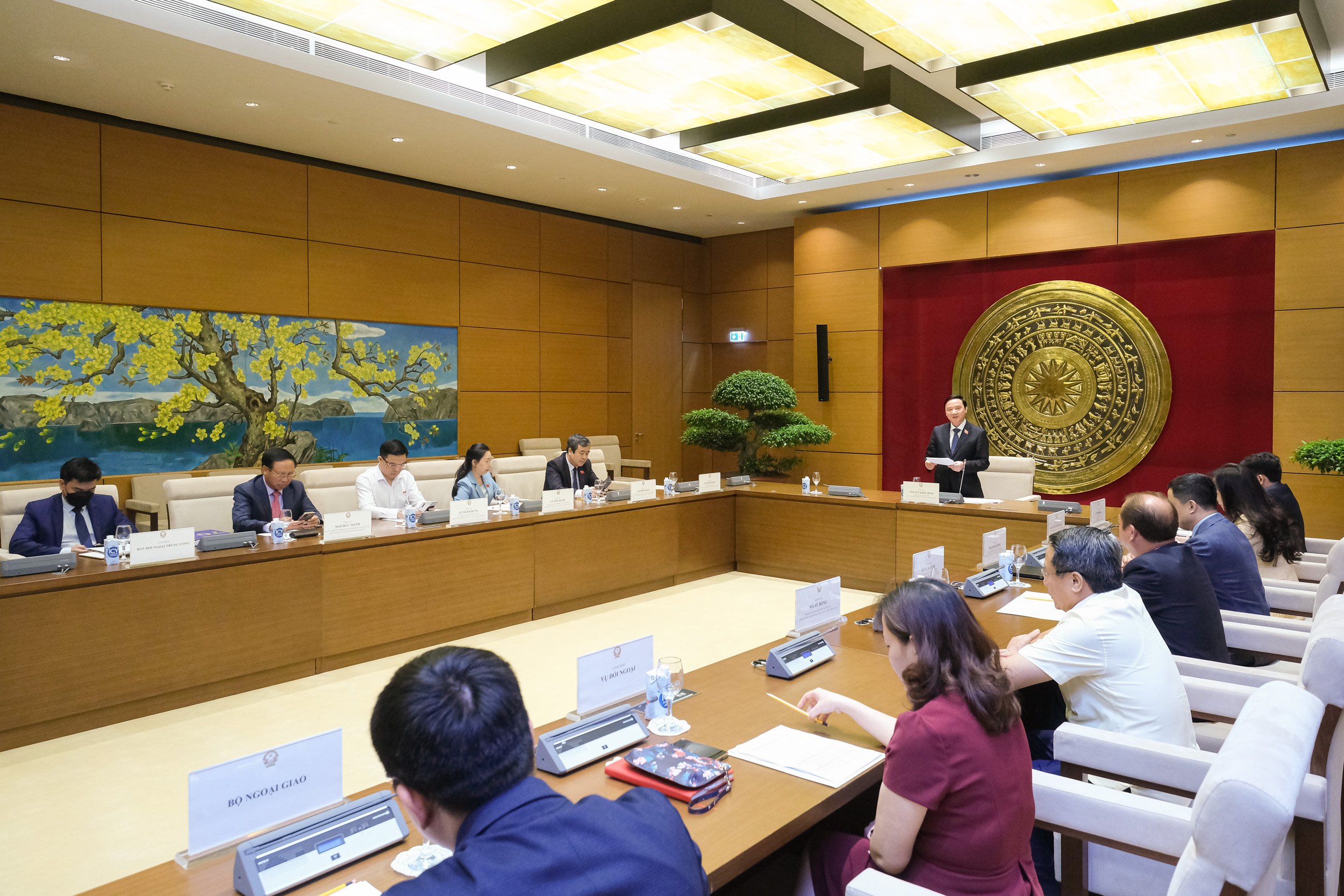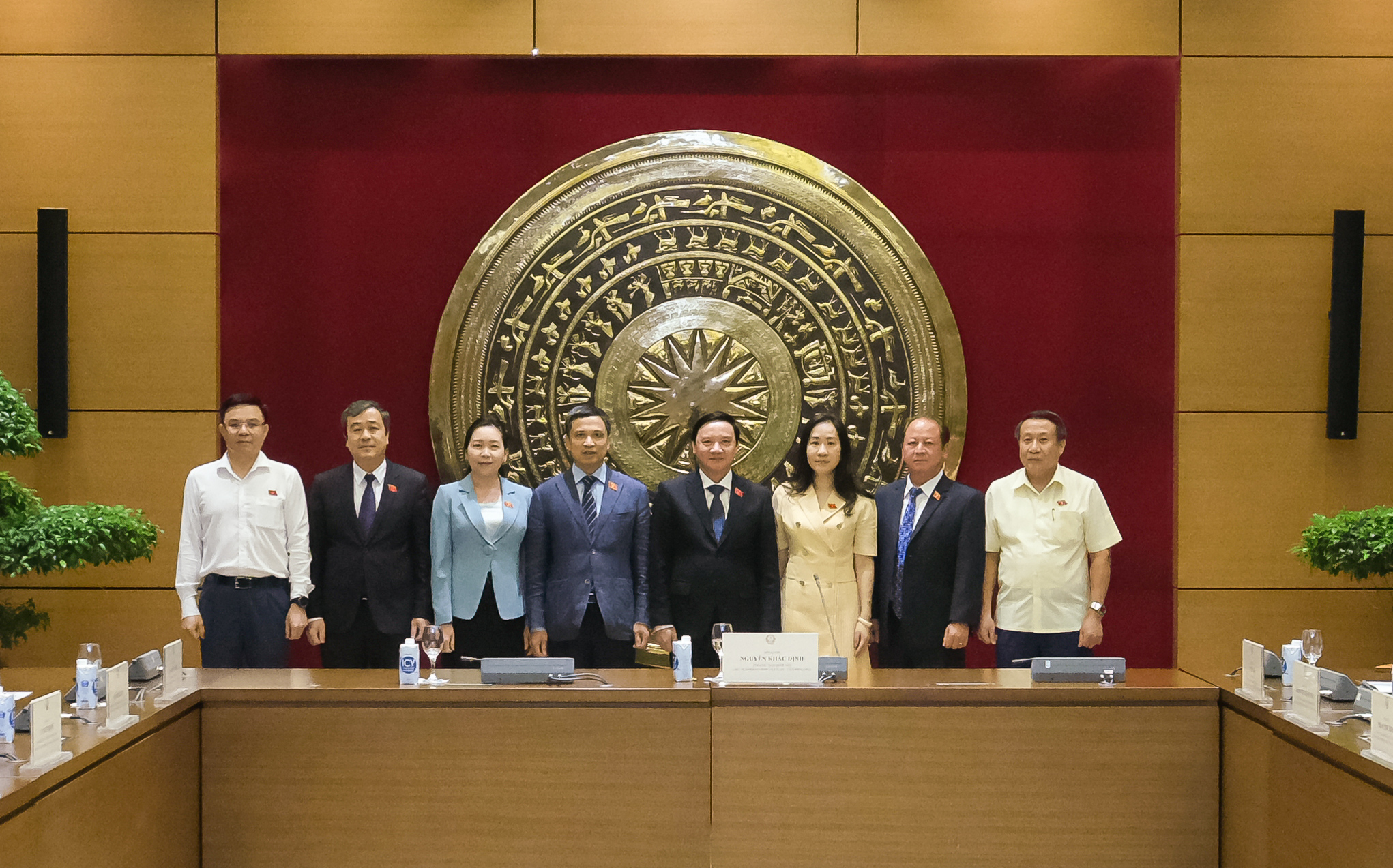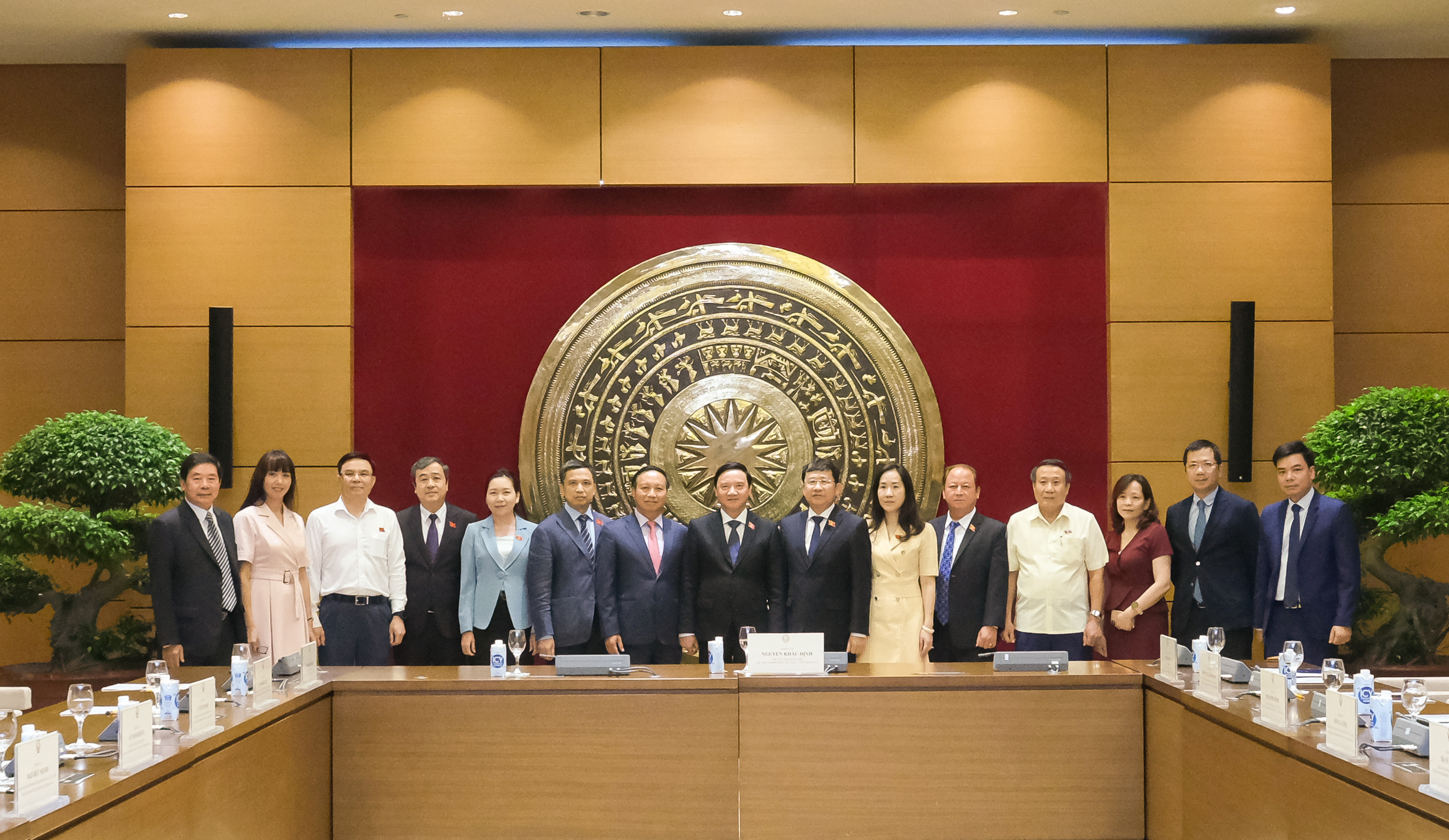 Phó Chủ tịch Quốc hội Nguyễn Khắc Định cùng các đại biểu chụp ảnh lưu niệm tại cuộc họp.