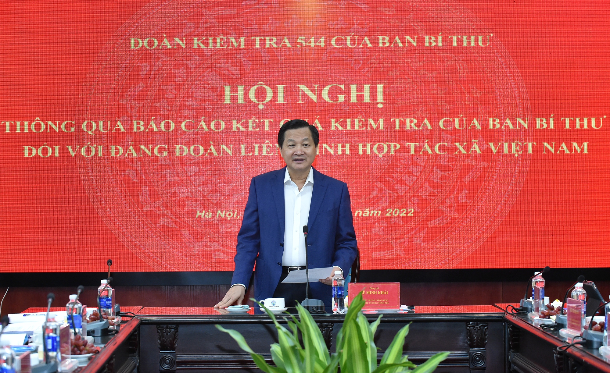 Kết luận hội nghị, đồng chí Lê Minh Khái, Trưởng Đoàn kiểm tra số 544 đánh giá cao tinh thần trách nhiệm của Đảng đoàn Liên minh Hợp tác xã Việt Nam, các đồng chí Đảng ủy viên và các đơn vị trực thuộc đã rất trách nhiệm, phối hợp tốt với Đoàn kiểm tra trong thực hiện nhiệm vụ.
