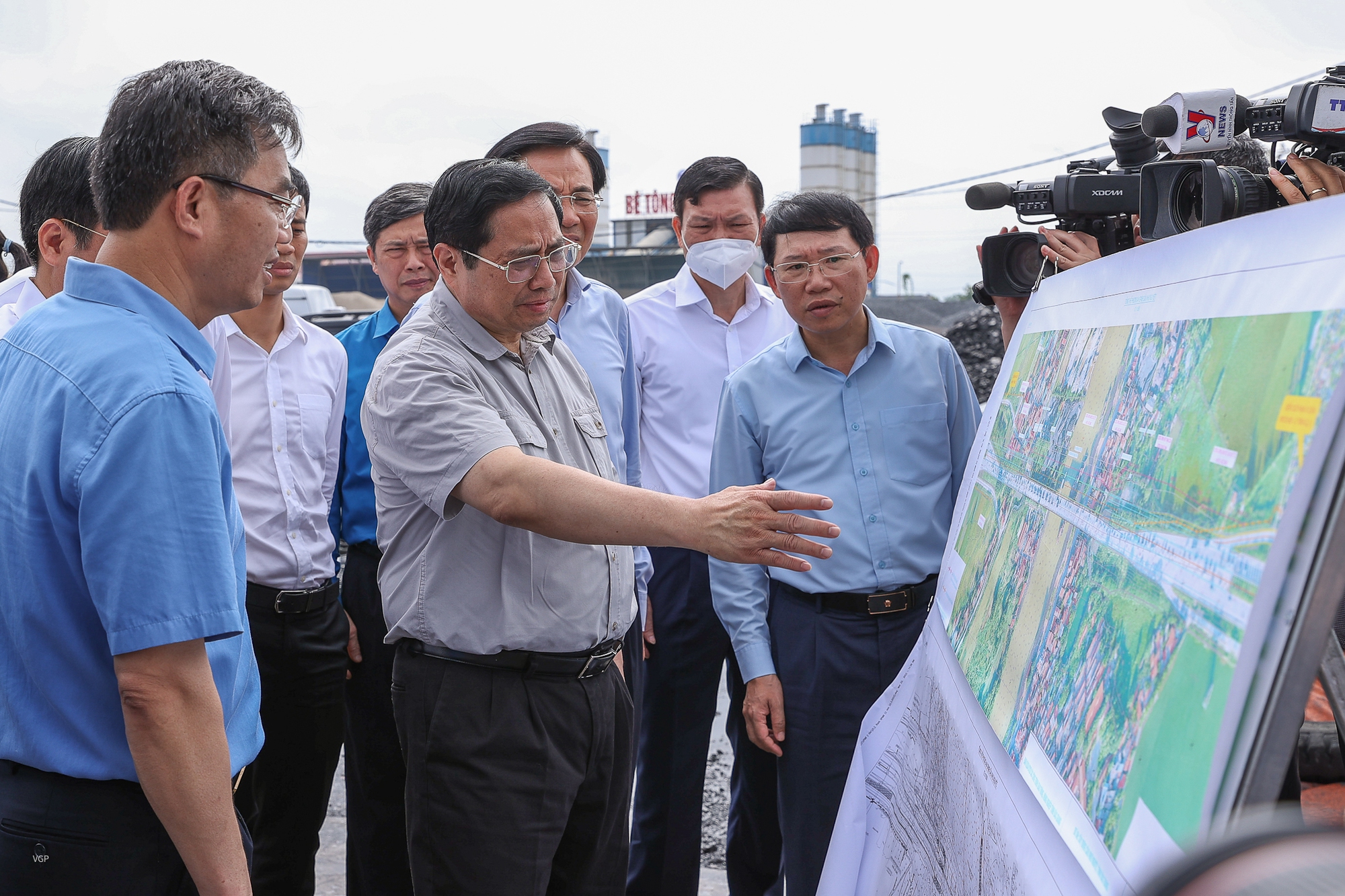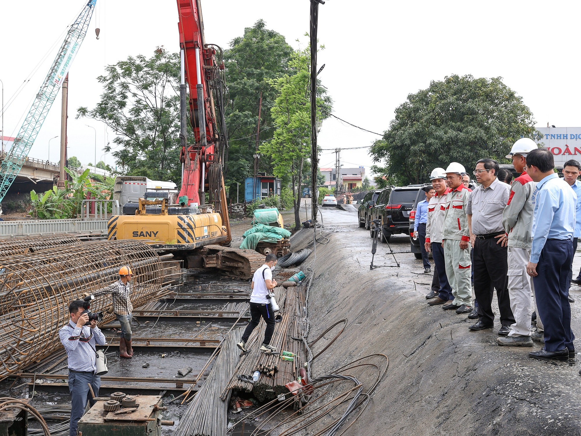 Thủ tướng khảo sát dự án thi công cầu Như Nguyệt mở rộng, nối hai tỉnh Bắc Giang và Bắc Ninh - Ảnh VGP/Nhật Bắc