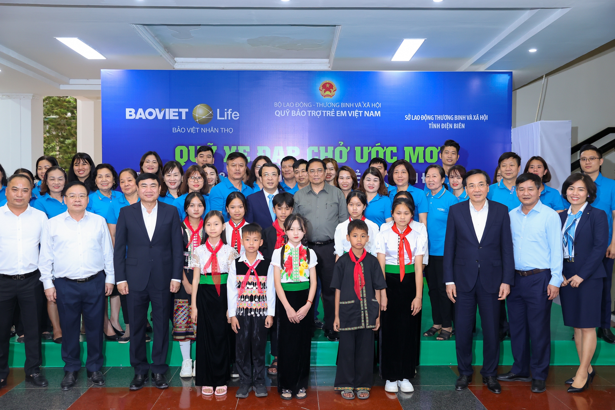 Thủ tướng tặng quà, trao học bổng cho 300 trẻ em của làng trẻ SOS và trẻ em có hoàn cảnh đặc biệt khó khăn trên địa bàn thành phố Điện Biên Phủ và huyện Điện Biên - Ảnh: VGP/Nhật Bắc