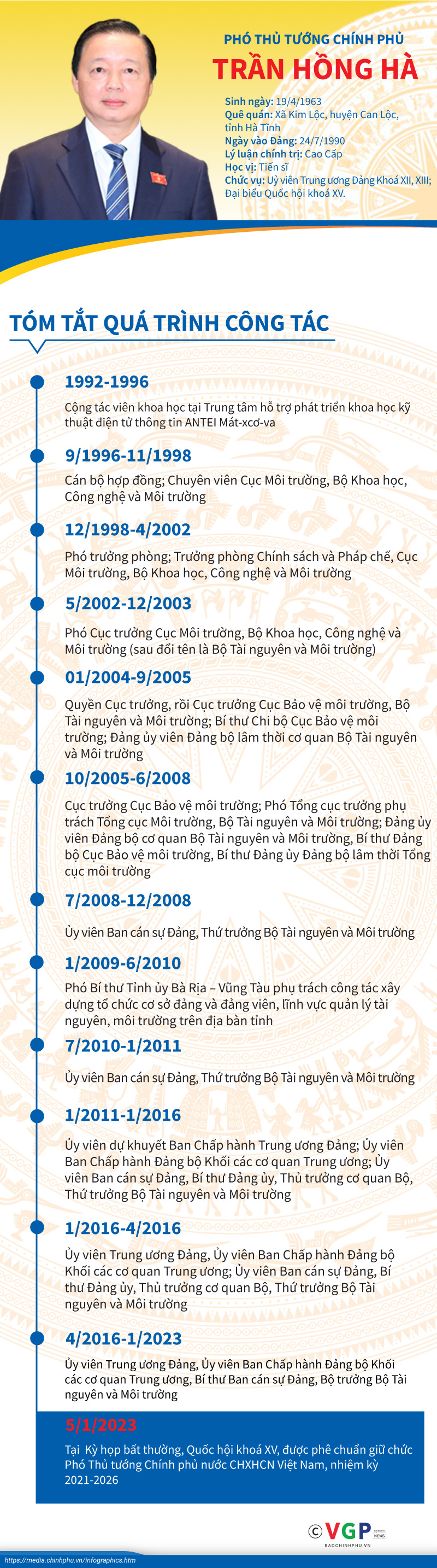 Ngày 05/01/2023: Tại kỳ họp bất thường lần thứ 2 - Quốc hội khóa XV, đồng chí Trần Hồng Hà được Quốc hội phê chuẩn bổ nhiệm chức vụ Phó Thủ tướng Chính phủ.