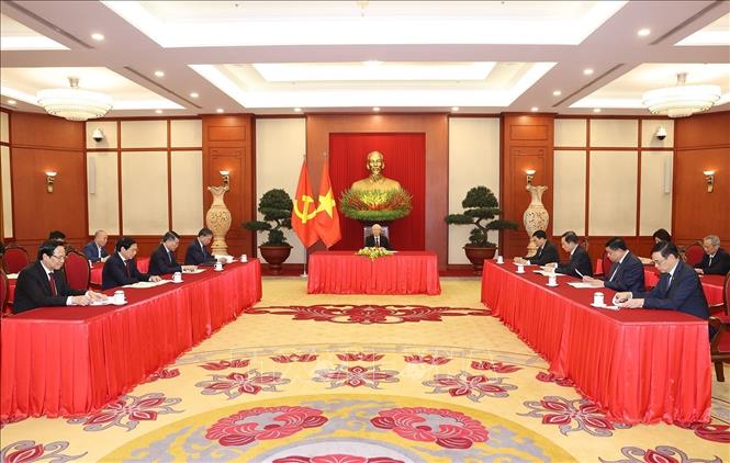 Tổng Bí thư Nguyễn Phú Trọng đã trao đổi với Thủ tướng Olaf Scholz về những thành tựu của Việt Nam sau hơn 35 năm đổi mới, đường lối phát triển, chính sách đối ngoại của Việt Nam và mục tiêu Việt Nam trở thành nước phát triển vào năm 2045. Tổng Bí thư khẳng định sự coi trọng đối với quan hệ Đối tác chiến lược Việt Nam-Đức trong đường lối đối ngoại đa phương hóa, đa dạng hóa, là bạn, đối tác tin cậy và thành viên tích cực, có trách nhiệm trong cộng đồng quốc tế.