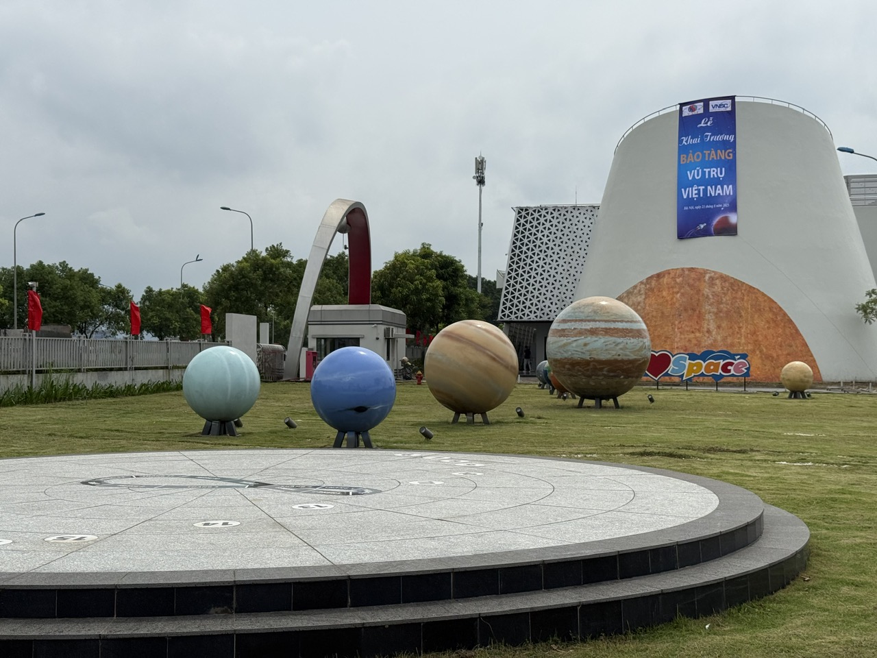 Với diện tích hơn 3.000m², Bảo tàng Vũ trụ Việt Nam được thiết kế hiện đại, gồm các khu trưng bày hành trình vũ trụ, công nghệ vệ tinh, tháp thiên văn và nhà chiếu hình vũ trụ