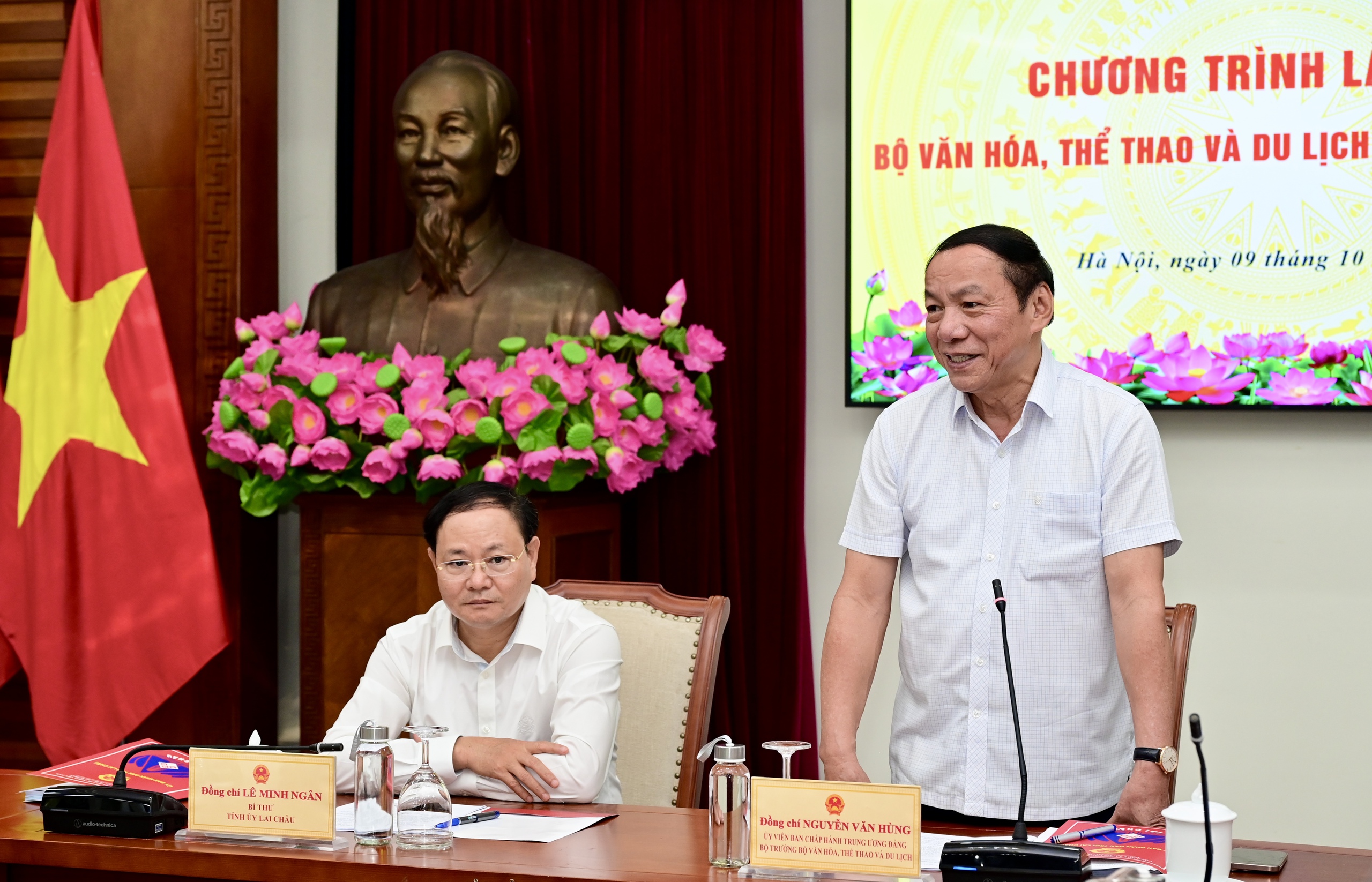Tại cuộc làm việc, Bộ trưởng đề nghị lãnh đạo tỉnh Lai Châu trao đổi cụ thể, trực tiếp các vấn đề liên quan đến phát triển văn hóa, thể thao và du lịch của địa phương, cũng như các kiến nghị đề xuất. Vấn đề nào thuộc thẩm quyền, Bộ VHTTDL sẽ trực tiếp trả lời, những vấn đề ngoài thẩm quyền, Bộ sẽ tổng hợp để báo cáo cấp trên với mục tiêu cao nhất là Bộ và địa phương cùng đồng hành để phát triển văn hóa.