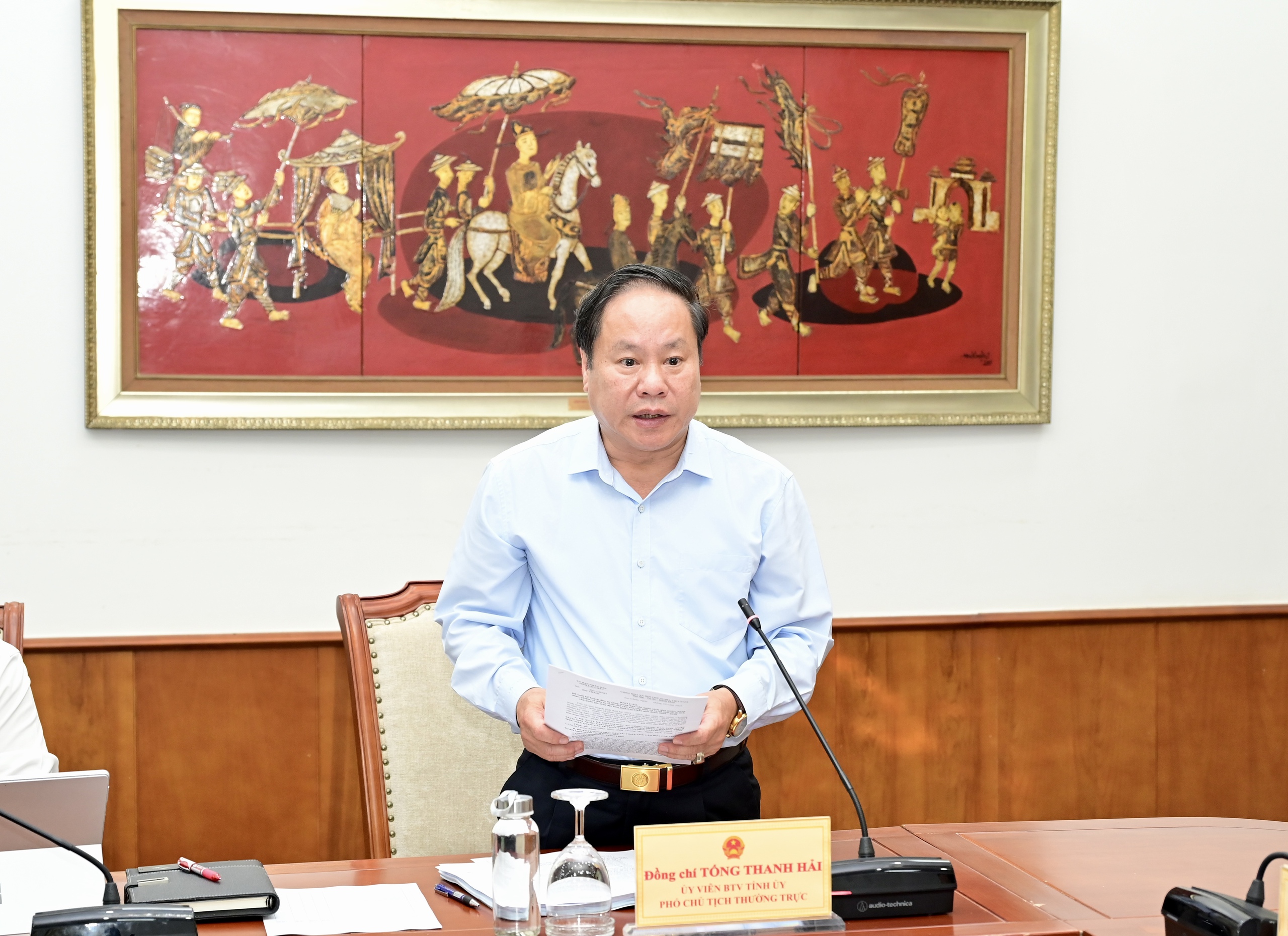 Phó Chủ tịch Thường trực UBND tỉnh Lai Châu Tống Thanh Hải báo cáo tại cuộc làm việc.
