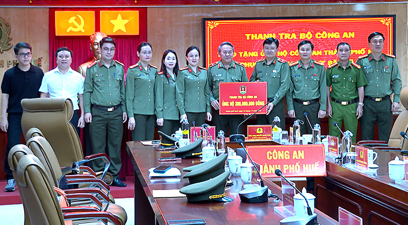 Những ngày sau đợt bão lũ vừa qua, nhiều địa phương trên địa bàn thành phố Huế vẫn đang nỗ lực khắc phục hậu quả, ổn định đời sống nhân dân. Chung tay cùng lực lượng công an địa phương và bà con vùng bị thiệt hại, ngày 12/11, đoàn công tác của Thanh tra Bộ Công an do Thiếu tướng Tạ Quang Huy – Phó Chánh Thanh tra Bộ làm Trưởng đoàn đã có chuyến thăm, trao quà ủng hộ cán bộ, chiến sĩ và bà con Nhân dân thành phố Huế