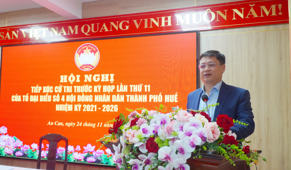 Cử tri phường An Cựu ghi nhận và bày tỏ sự phấn khởi trước những kết quả phát triển kinh tế – xã hội của thành phố thời gian qua; đồng thời kiến nghị một số nội dung liên quan đến vấn đề hạ tầng đô thi, triển khai quy hoạch các dự án; thu gom xử lý rác thải, tình trạng lấn chiếm đất công, đất mồ mả; nhà ở xuống cấp trong phạm vi dự án khu Đại học Huế; thiếu điện chiếu sáng tại một số tuyến đường; sửa chữa nâng cấp các tuyến đường giao thông…