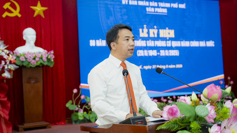 Diễn văn ôn lại truyền thống vẻ vang 80 năm xây dựng và trưởng thành của Văn phòng cơ quan hành chính Nhà nước, Chánh Văn phòng UBND thành phố Huế Trần Hữu Thuỳ Giang nhấn mạnh: Trải qua 80 năm xây dựng và trưởng thành, trong bất kỳ hoàn cảnh nào, đội ngũ cán bộ văn phòng luôn nêu cao tinh thần tận tụy – trách nhiệm – sáng tạo, đóng góp quan trọng vào sự lãnh đạo, chỉ đạo, điều hành của chính quyền các cấp. Dù ở giai đoạn lịch sử nào, hoặc tên gọi có thay đổi, những người làm công tác văn phòng vẫn luôn kiên định, bền bỉ, hoàn thành sứ mệnh “tổng hợp – tham mưu – phục vụ – hậu cần” cho hoạt động của UBND và lãnh đạo thành phố.