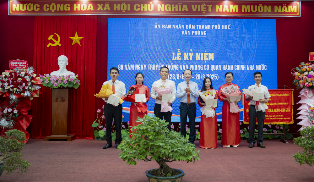 Phát biểu tại lễ kỷ niệm, Chủ tịch UBND thành phố Huế Nguyễn Văn Phương ghi nhận, đánh giá cao những nỗ lực, đóng góp của Văn phòng trong suốt thời gian qua, đặc biệt trong tham mưu và phục vụ các sự kiện lớn của thành phố. Chủ tịch UBND thành phố Huế nhấn mạnh, dù mô hình tổ chức, phương thức làm việc có thay đổi, nhưng tập thể Văn phòng đã nhanh chóng thích ứng, hoàn thành xuất sắc nhiệm vụ.