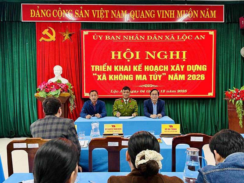 Ngày 4/12, xã Lộc An (TP. Huế) tổ chức hội nghị triển khai kế hoạch xây dựng “xã không ma túy” năm 2026, nhằm cụ thể hóa chỉ đạo của Chủ tịch UBND thành phố tại Công văn số 17330/UBND-NC ngày 1/12/2025 về việc đẩy mạnh thực hiện giai đoạn 2 và ...