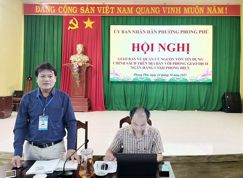 Ngày 14/10, UBND phường Phong Phú tổ chức Hội nghị giao ban quản lý nguồn vốn tín dụng chính sách với Ngân hàng Chính sách xã hội (NHCSXH) Phong Điền tại địa phương. Đồng chí Nguyễn Đăng Phúc, UVBTV Đảng uỷ, Phó Chủ tịch UBND phường và đồng chí Trương ...