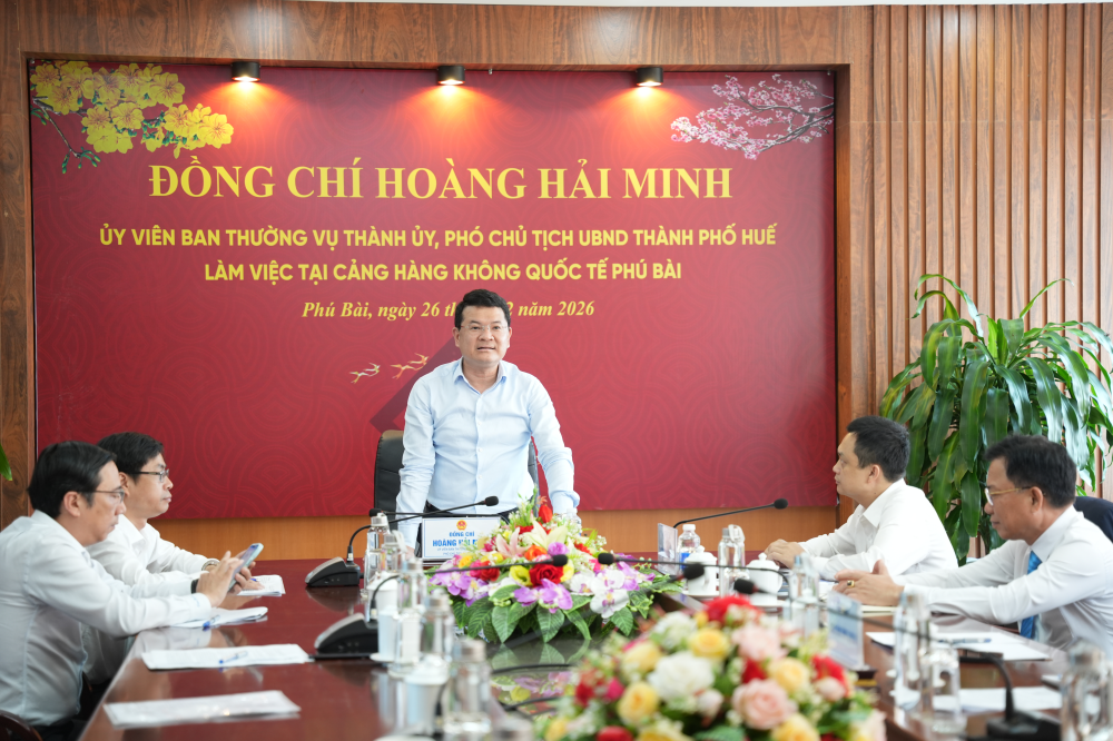 Tại Cảng hàng không quốc tế Phú Bài, Phó Chủ tịch UBND thành phố Hoàng Hải Minh ghi nhận nỗ lực của tập thể cán bộ, người lao động của cảng trong việc đồng hành cùng sự phát triển chung của thành phố. Tuy nhiên, Phó Chủ tịch UBND thành phố cũng thẳng thắn chỉ ra một số tồn tại như sản lượng khai thác và tần suất đường bay vẫn chưa đạt như kỳ vọng so với tiềm năng du lịch, dịch vụ của Huế. Phó Chủ tịch UBND thành phố đề nghị đơn vị phân tích rõ nguyên nhân tăng, giảm sản lượng; chủ động phối hợp với các hãng hàng không làm việc cụ thể để mở thêm đường bay, tăng chuyến bay đến Huế, nhất là các thị trường trọng điểm.
