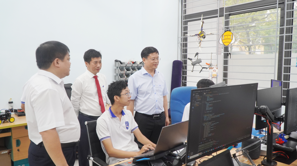 Phó Chủ tịch Thường trực UBND thành phố Huế Nguyễn Thanh Bình tham quan Trung tâm STEAM AI (HUSC STEAM AI Center).