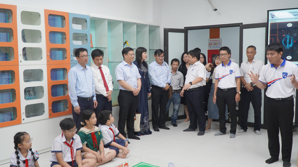 Các đại biểu tham quan Trung tâm STEAM AI (HUSC STEAM AI Center).