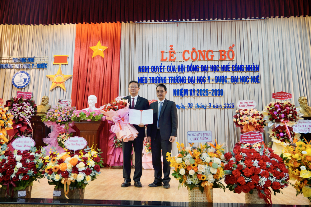 Tại buổi lễ, đại diện lãnh đạo Hội đồng Đại học Huế đã công bố và trao Nghị quyết công nhận Hiệu trưởng Trường Đại học Y - Dược, Đại học Huế nhiệm kỳ 2025-2030. Đây là sự kiện có ý nghĩa quan trọng, tiếp nối truyền thống gần 70 năm xây dựng và phát triển của Trường Đại học Y - Dược, Đại học Huế.