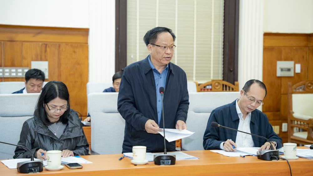 Giám đốc Sở Tài chính La Phúc Thành báo cáo tại cuộc họp