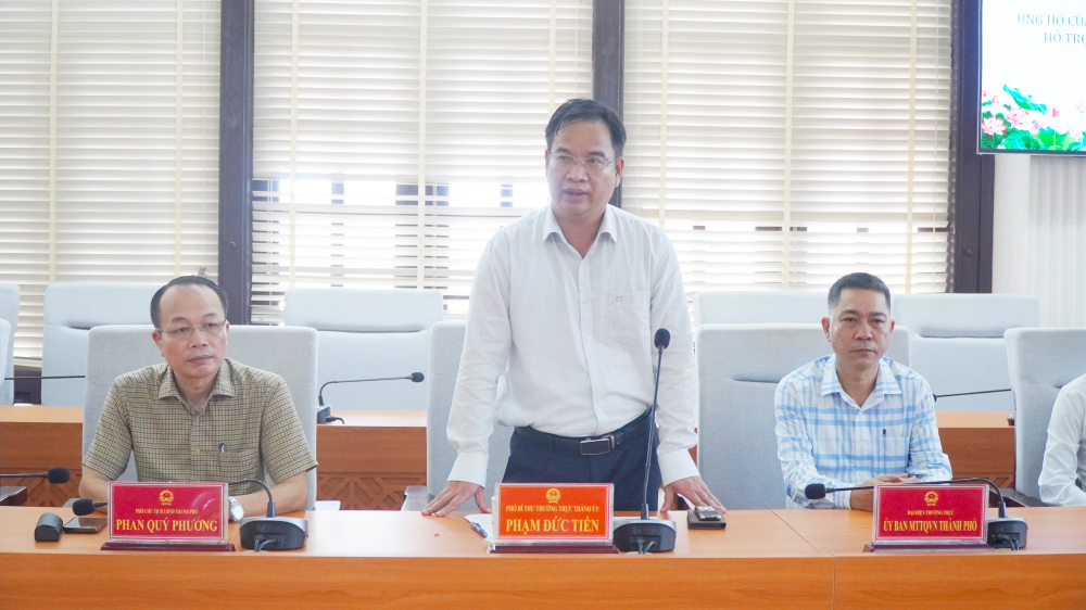 Thay mặt lãnh đạo thành phố, Phó Bí thư Thường trực Thành ủy Phạm Đức Tiến trân trọng cảm ơn sự quan tâm, chia sẻ kịp thời của Học viện Chính trị Quốc gia Hồ Chí Minh đối với Đảng bộ, chính quyền và nhân dân thành phố Huế. Đồng chí cho biết, ngay sau khi mưa lũ kết thúc, thành phố đã chỉ đạo các địa phương, đơn vị khẩn trương huy động lực lượng, phương tiện ra quân tổng dọn vệ sinh môi trường, khắc phục sạt lở, hư hại hạ tầng, hỗ trợ người dân sửa chữa nhà cửa, ổn định đời sống và sản xuất. Bên cạnh đó, thành phố cũng tập trung chỉ đạo xử lý môi trường, phun khử khuẩn tại các khu dân cư, trường học, trạm y tế, bảo đảm an toàn sức khỏe cho nhân dân.