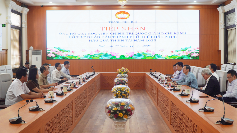 Tại buổi tiếp nhận, PGS.TS Đoàn Minh Huấn đã chia sẻ sâu sắc trước những thiệt hại mà nhân dân thành phố Huế phải gánh chịu trong đợt mưa lũ vừa qua; đồng thời bày tỏ sự cảm thông, động viên tinh thần vượt khó, nỗ lực khắc phục hậu quả, sớm ổn định đời sống. Đoàn công tác đã trao phần quà hỗ trợ trị giá 500 triệu đồng đến nhân dân thành phố Huế, góp phần khắc phục khó khăn trước mắt, thể hiện tình cảm, trách nhiệm và tinh thần tương thân tương ái của cán bộ, giảng viên, học viên Học viện Chính trị Quốc gia Hồ Chí Minh đối với người dân vùng lũ.