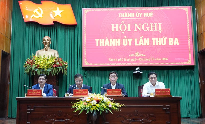 Phát biểu bế mạc, Bí thư Thành ủy Nguyễn Đình Trung yêu cầu để tổ chức thực hiện tốt các nghị quyết, kết luận của Thành ủy, tôi đề nghị các đồng chí Thành ủy viên, bí thư cấp ủy, thủ trưởng các sở, ban, ngành, đoàn thể, địa phương tập trung thực hiện tốt một số nhiệm vụ trọng tâm sau: Đẩy mạnh công tác truyền, quán triệt và triển khai thực hiện Nghị quyết Đại hội Đảng bộ thành phố lần thứ 17 và Chương trình hành động thực hiện Nghị quyết trong toàn hệ thống chính trị; bám sát Nghị quyết Đại hội 17, tập trung rà soát các văn bản chỉ đạo của Trung ương, Thành ủy để tổ chức thực hiện quyết liệt, đồng bộ với nhiều giải pháp cụ thể; Chủ động xây dựng chương trình công tác năm 2026 và giai đoạn 2026 - 2030 để lãnh đạo thực hiện; Khẩn trương rà soát, điều chỉnh Quy hoạch thành phố Huế thời kỳ 2021 - 2030, tầm nhìn đến năm 2050; Quy hoạch chung đô thị thành phố đến năm 2045, tầm nhìn đến năm 2065 và các quy hoạch có liên quan, hoàn thành trước 31/12/2025; Đẩy nhanh tiến độ giải phóng mặt bằng, bồi thường, hỗ trợ tái định cư; tháo gỡ các khó khăn, vướng mắc, nhất là các dự án trọng điểm; Kịp thời rà soát toàn bộ thủ tục hành chính, đơn giản hóa, minh bạch hóa và chuẩn hóa quy trình, gắn chặt với việc đẩy mạnh phân cấp, phân quyền, nâng cao trách nhiệm người đứng đầu và tăng cường kiểm tra, giám sát.