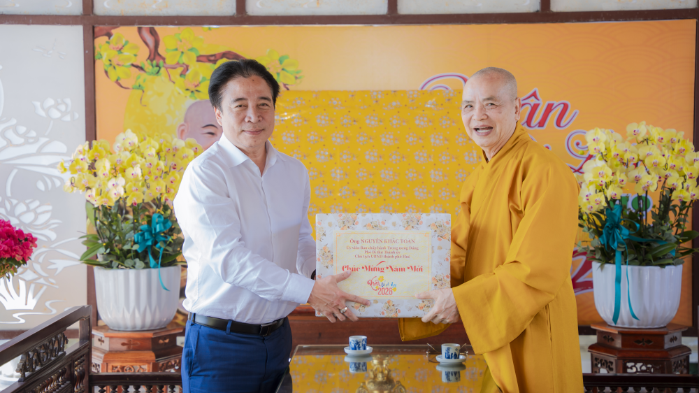 Chủ tịch UBND thành phố Nguyễn Khắc Toàn thăm, chúc Tết Hòa thượng Thích Giác Quang