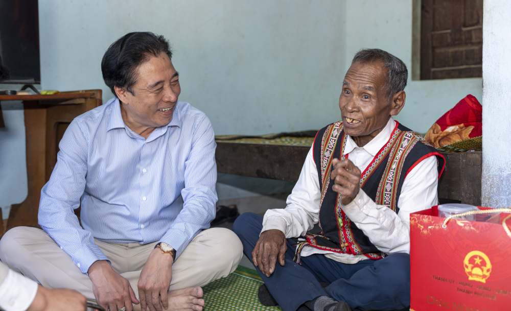Tiếp đó, tại xã Nam Đông, Chủ tịch UBND thành phố Nguyễn Khắc Toàn kiểm tra công tác chuẩn bị Tết tại trung tâm xã và một số thôn; đồng thời thăm, chúc Tết các hộ gia đình chính sách gồm: ông Hồ Văn Thấy (bệnh binh, suy giảm khả năng lao động 71–80%, thôn Ta Rinh) và ông Trần Văn Nhất (bệnh binh, suy giảm khả năng lao động 61–70%, thôn Axách). Tại đây, Chủ tịch UBND thành phố đề nghị cấp ủy, chính quyền địa phương tiếp tục rà soát, nắm chắc tình hình đời sống Nhân dân; quan tâm chăm lo đầy đủ, kịp thời cho các gia đình chính sách, người có công, hộ nghèo, hộ cận nghèo và các hộ có hoàn cảnh khó khăn, bảo đảm mọi người, mọi nhà đều được đón Tết vui tươi, an toàn, nghĩa tình.