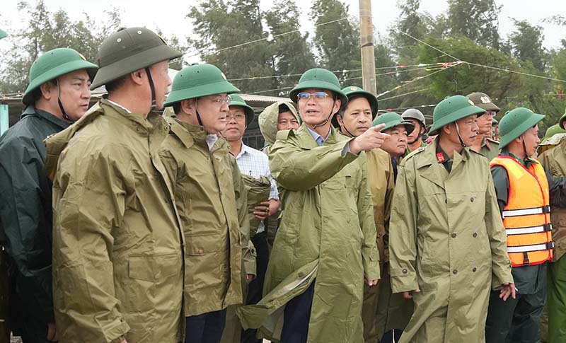 Ngay sau buổi làm việc, Bí thư Thành ủy Nguyễn Đình Trung cùng đoàn công tác đã trực tiếp đến kiểm tra thực tế khu vực sạt lở tại bờ biển Thuận An, đây là khu vực nhiều năm qua xảy ra hiện tượng sạt lở bờ biển nghiêm trọng, do biển dâng cao và triều cường mạnh khiến việc sạt lỡ vẫn diễn ra dù bão chưa đổ bộ. Tại đây, Bí thư yêu cầu các đơn vị khẩn trương gia cố đê kè, cắm biển cảnh báo, không để người dân ra khu vực nguy hiểm.