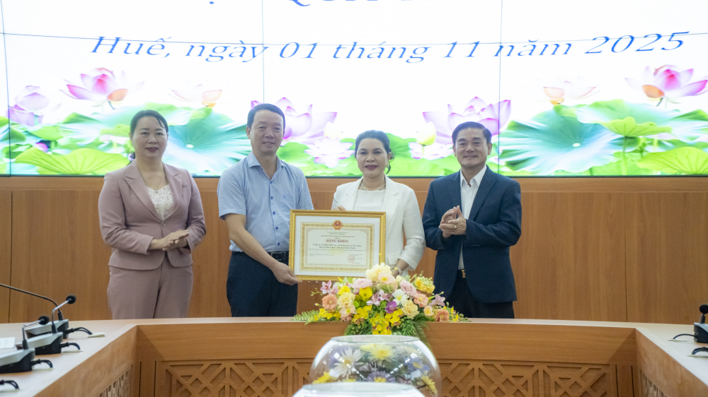 Dịp này, Chủ tịch UBND thành phố đã trao tặng Bằng khen cho Tập đoàn Kim Oanh vì đã có nhiều đóng góp, ủng hộ cho nhân dân thành phố Huế bị ảnh hưởng do mưa lũ năm 2025. UBMTTQ Việt Nam thành phố Huế đã trao chứng nhận Tấm lòng vàng cho Tập đoàn Kim Oanh đã hỗ trợ nhân dân thành phố Huế bị thiệt hại do lũ lụt gây ra năm 2025. (ảnh dưới)