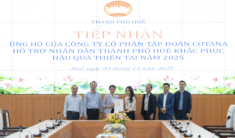 Tại buổi tiếp nhận, đại diện Công ty CP Tập đoàn Cotana bày tỏ sự cảm thông sâu sắc trước những thiệt hại nặng nề mà người dân Huế đang phải gánh chịu sau các đợt mưa lũ cuối tháng 10 và đầu tháng 11 vừa qua. Là một doanh nghiệp đóng trên địa bàn, Cotana mong muốn được chung tay, chia sẻ khó khăn với người dân, góp phần giải quyết những nhu cầu cấp thiết trước mắt, giúp người dân sớm ổn định cuộc sống. Đại diện doanh nghiệp cũng khẳng định sẽ tiếp tục đồng hành cùng chính quyền thành phố trong các hoạt động an sinh xã hội và hỗ trợ cộng đồng thời gian tới.