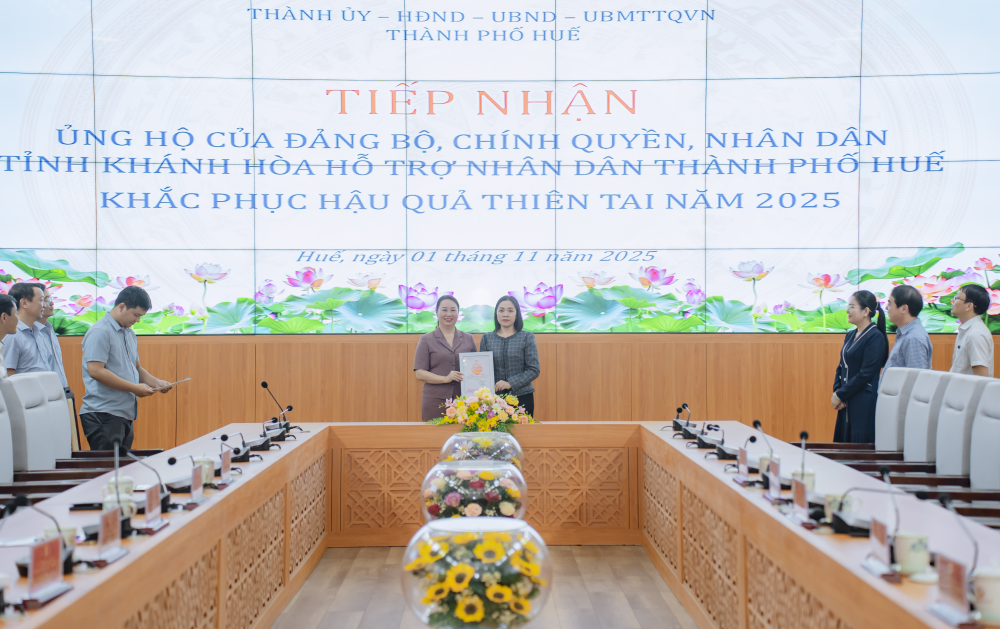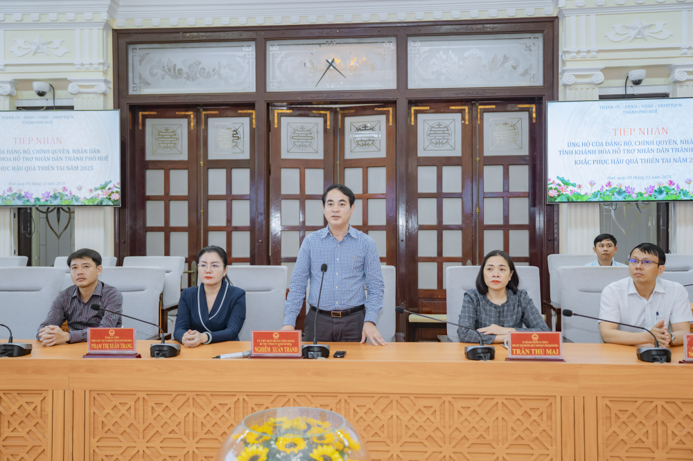 Bí thư Thành ủy Nguyễn Đình Trung trân trọng cảm ơn tình cảm, sự sẻ chia quý báu của Đảng bộ, Chính quyền, Mặt trận Tổ quốc và Nhân dân tỉnh Khánh Hòa đã dành cho thành phố Huế trong thời điểm khó khăn này. Nguồn hỗ trợ 2 tỷ đồng không chỉ là sự giúp đỡ về vật chất, mà còn là nguồn động viên to lớn về tinh thần, tiếp thêm nghị lực để Đảng bộ, chính quyền và Nhân dân thành phố Huế vượt qua khó khăn, khôi phục sản xuất và ổn định cuộc sống; đồng thời cam kết phân bổ, chuyển nguồn hỗ trợ đến đúng đối tượng, đảm bảo công khai, minh bạch giúp người dân sử dụng hiệu quả nguồn lực, sớm ổn định đời sống và sinh kế. Đồng chí bày tỏ mong muốn, tỉnh Khánh Hòa tiếp tục nhận được sự quan tâm, đồng hành; kết nối hợp tác các lĩnh vực thế mạnh của địa phương nhất là lĩnh vực văn hóa, du lịch, dịch vụ, giao thông...